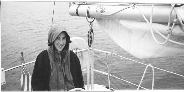 helm of Patriot taking her up wind as we headed back to Patriot's short